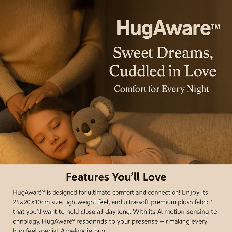 HugAware™ is designed for ultimate comfort and connection! Enjoy its Small (8 inches / 21 cm)Large (12 inches / 30cm)size, lightweight feel, and ultra-soft premium plush fabric that you’ll want to hold close all day long. With its AI motion-sensing technology, HugAware™ responds to your presence with gentle, lifelike reactions — making every hug feel special. Available in charming, neutral tones, it’s the perfect cozy addition to any space.